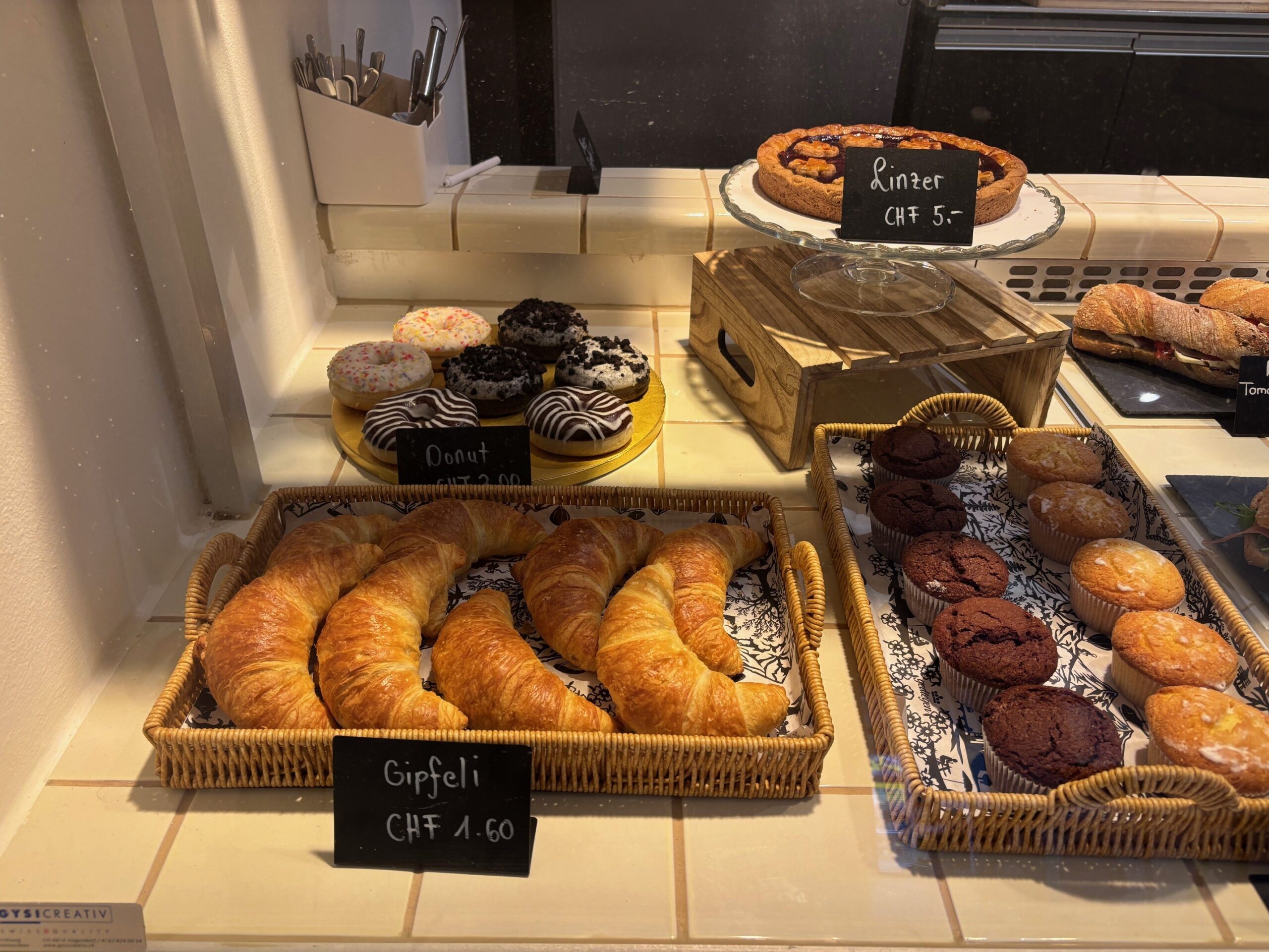 Bei uns gibt es frisch gebrühten Kaffee & mehr; feine frisch zubereitete Bistrogerichte wie Kuchen, hausgemachte Glacé (ohne Zusatzstoffe und hergestellt aus frischen Zutaten), Sandwiches, Suppen & mehr.